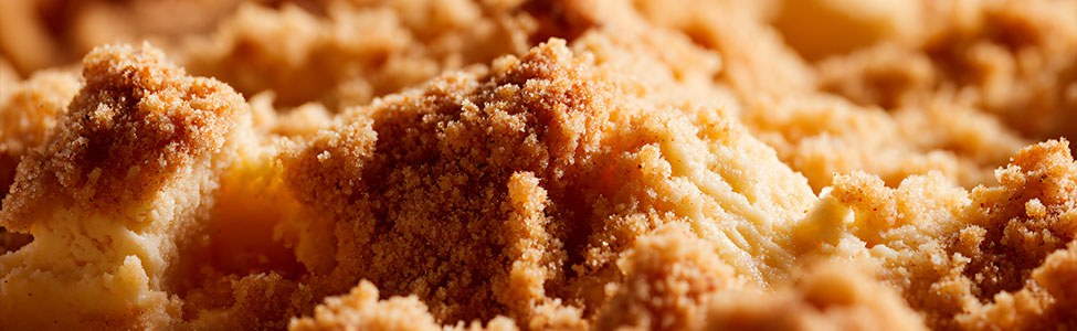 19. Coloca la masa reservada (crumble) sobre la superficie.