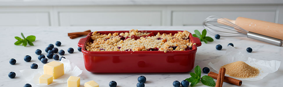 1. Vacía los blueberries en una olla junto con el azúcar, la fécula de maíz y el jugo de limón.