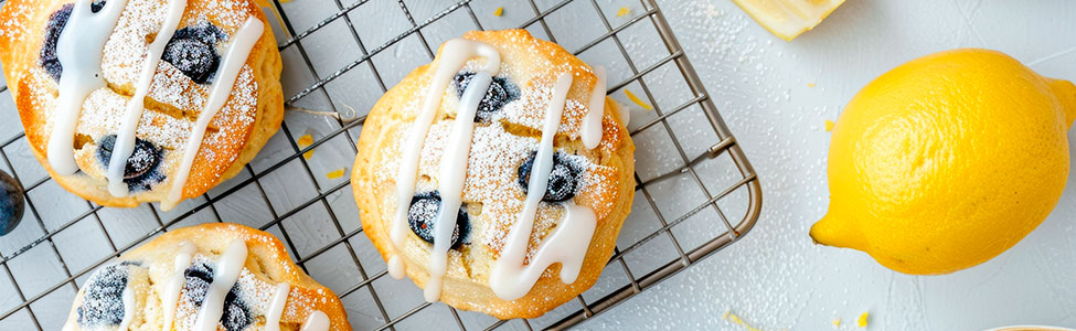 Prepara unas deliciosas galletas de limón con blueberries y glaseado
