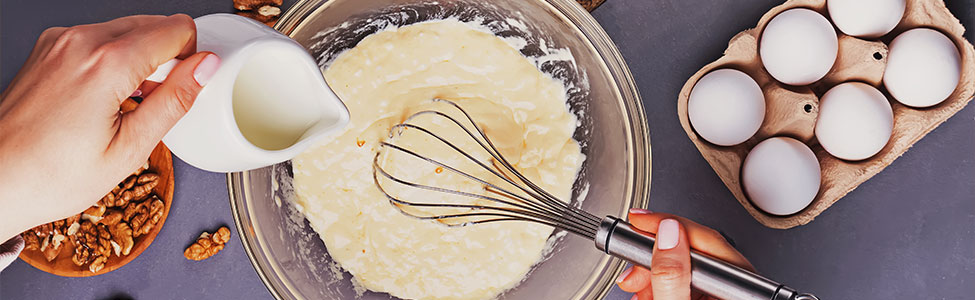 3. En otro bowl, mezcla los ingredientes secos, la harina, canela, polvo para hornear, bicarbonato y sal. En otro recipiente, bate las piezas de huevo con el azúcar, el aceite y un chorrito de Vainilla Molina.